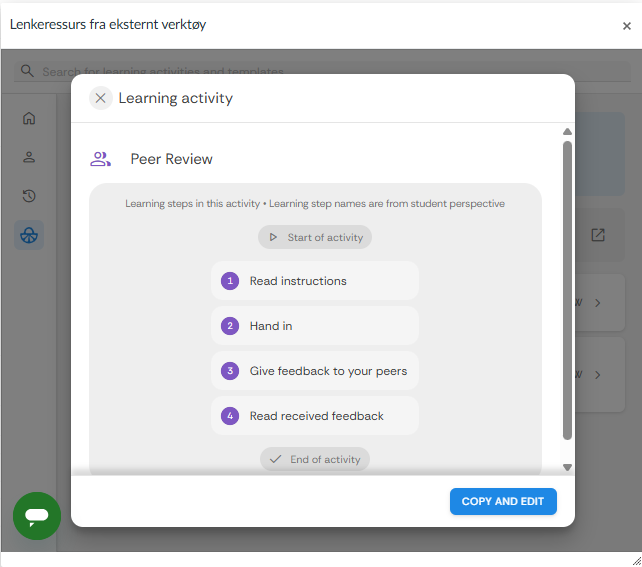 For ? kopiere en oppgave du har lagd tidligere trykker du p? Past activitites og du vil f? opp en liste over alle oppgavene du har lagd i FeedbackFruits, og kan enkelt kopiere en av disse.